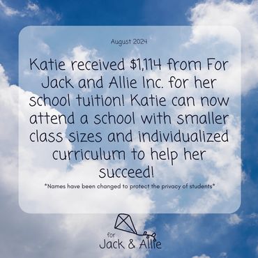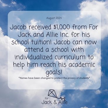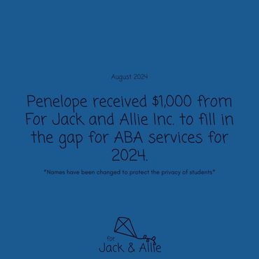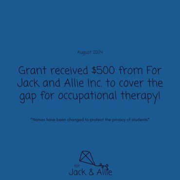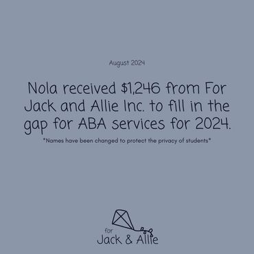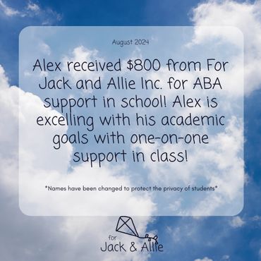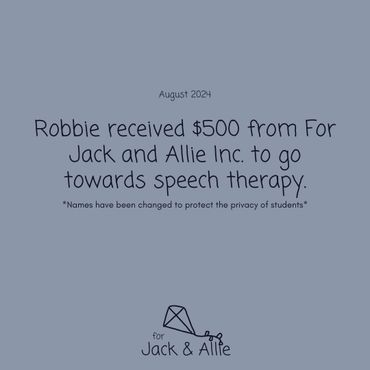 Grants from Jack and Allie are intended to help cover the cost of private special education tuition as well as therapies such as ABA, Speech, Occupational, and Physical therapy.